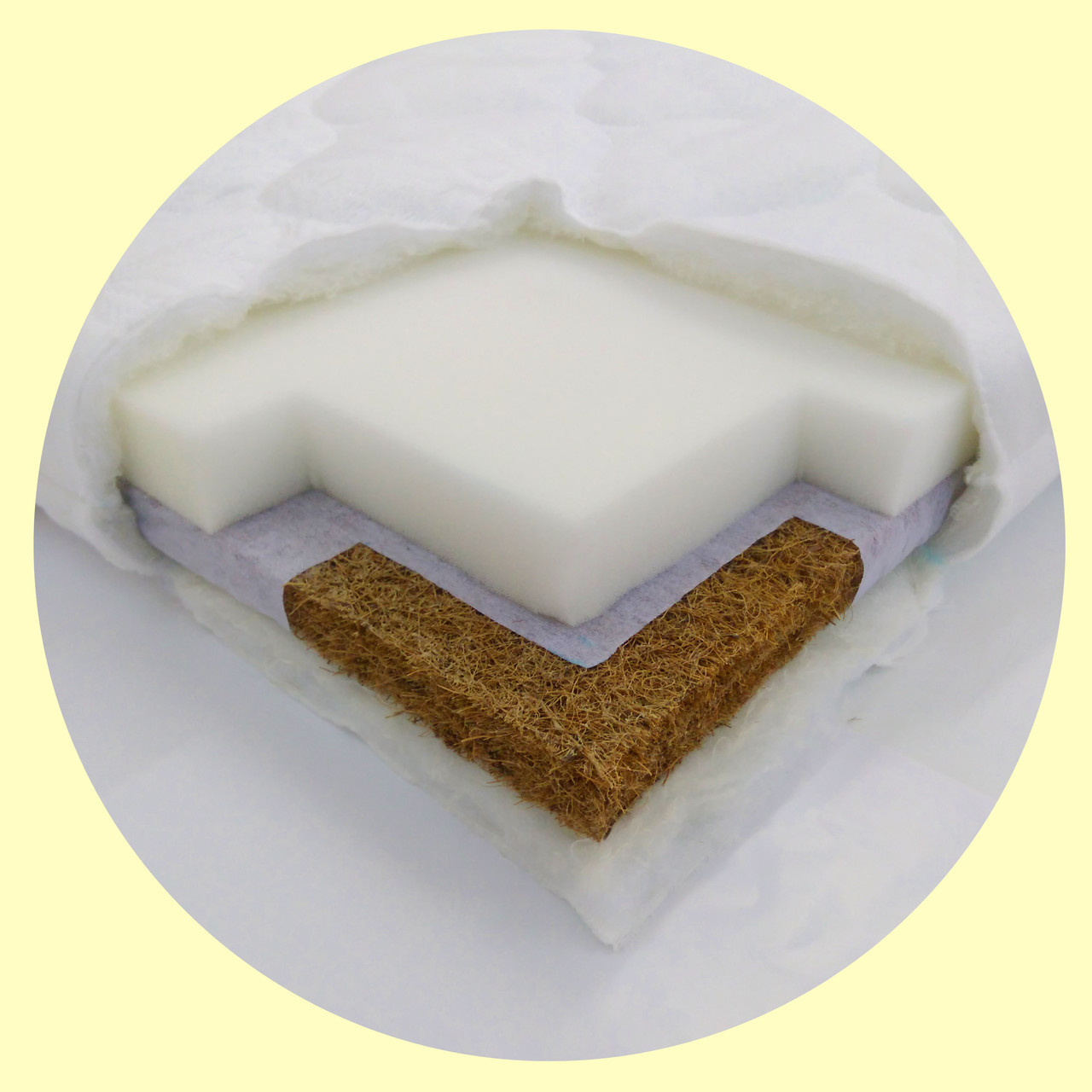 Матрац має комбіновану жорсткість. Одна сторона, жорсткіша за рахунок двох шарів кокосової койри.
